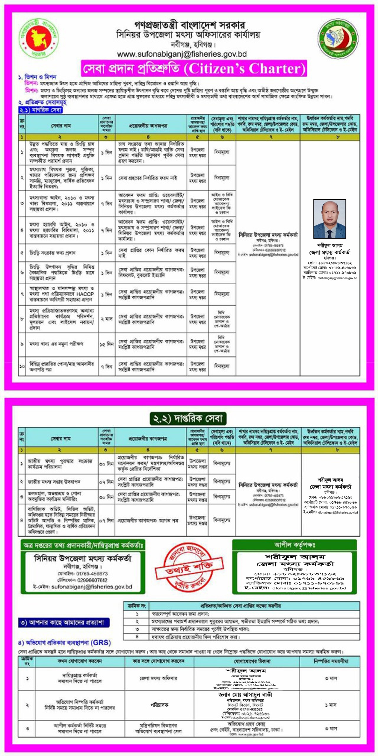 সিনিয়র উপজেলা মৎস্য কর্মকর্তা, নবীগঞ্জ , হবিগঞ্জ । ফোন -০৮৩২৮-৫৬৩০২ ।